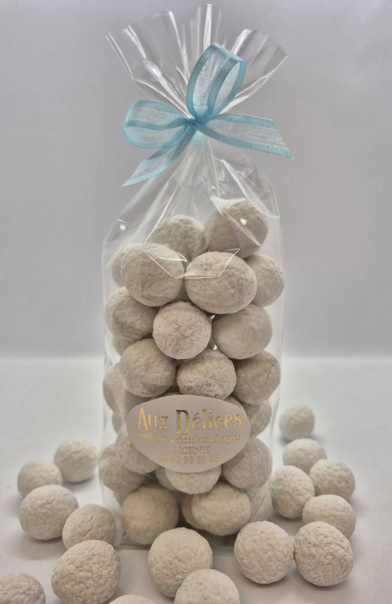 Une sublime ganache caramel beurre salé recouverte d'un chocolat blanc et d'une fine pellicule de sucre cristallisé, en forme d'hommage aux authentiques Tas de sel des paludiers des marais salants.